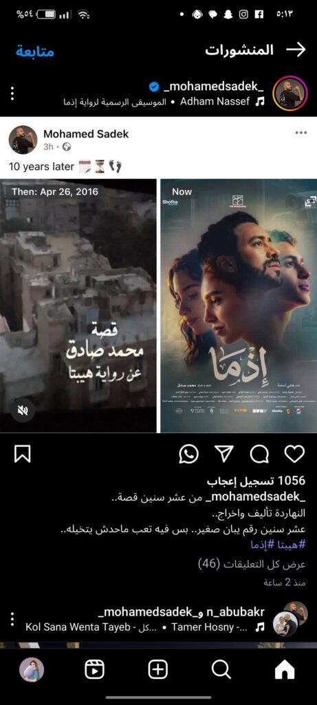 اعلن الكاتب محمد صادق على صفحته الرسمية على انستجرام عن فيلمه” إذما” واللي كان رواية فى البداية من ١٠سنين. و النهاردة بيشوق جمهور الرواية أنهم هيشوفوه كفيلم.